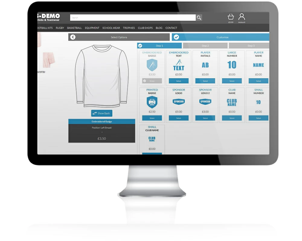 - Product Customisation - enabling your customers to add badges, embroidery, numbers and names to their items